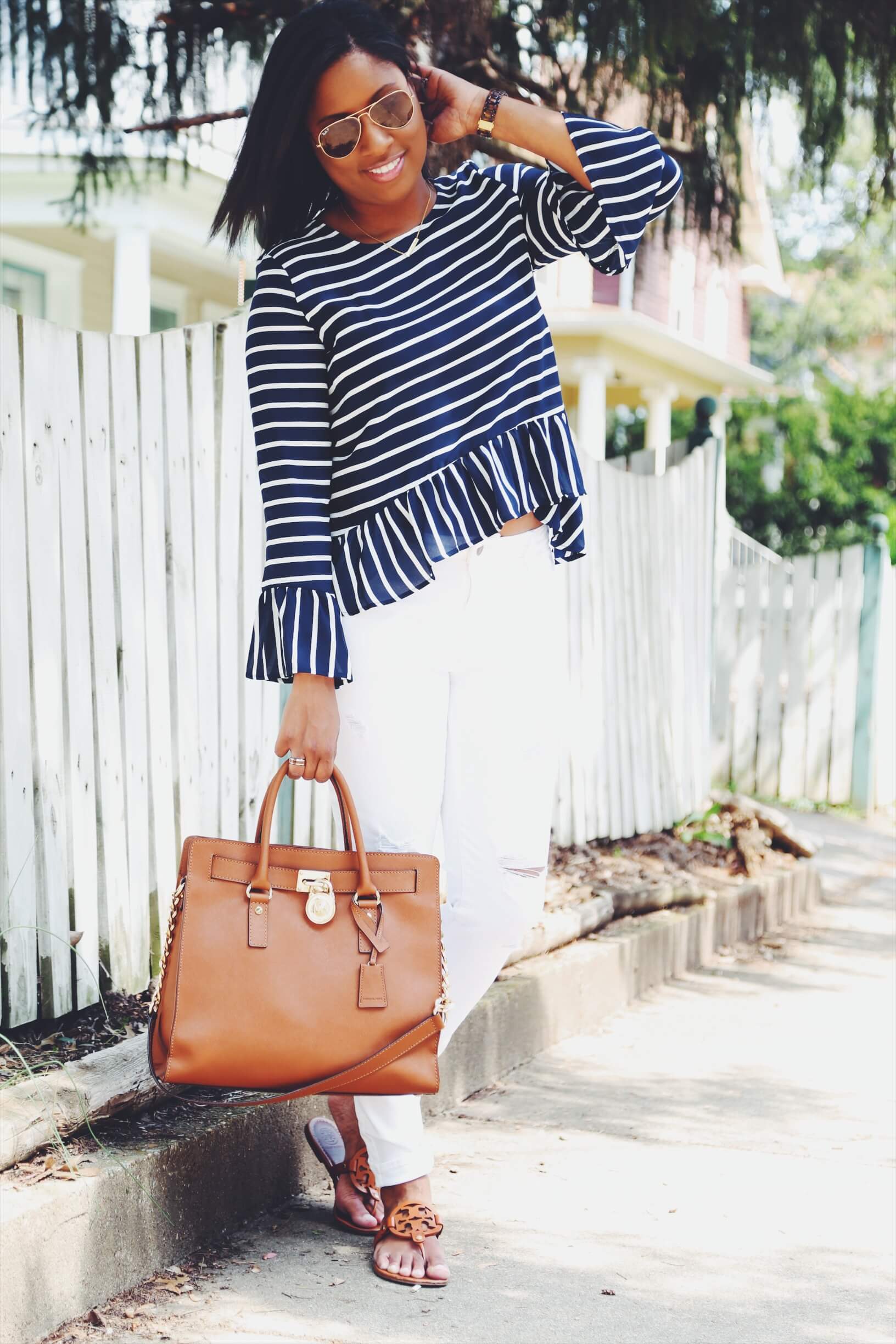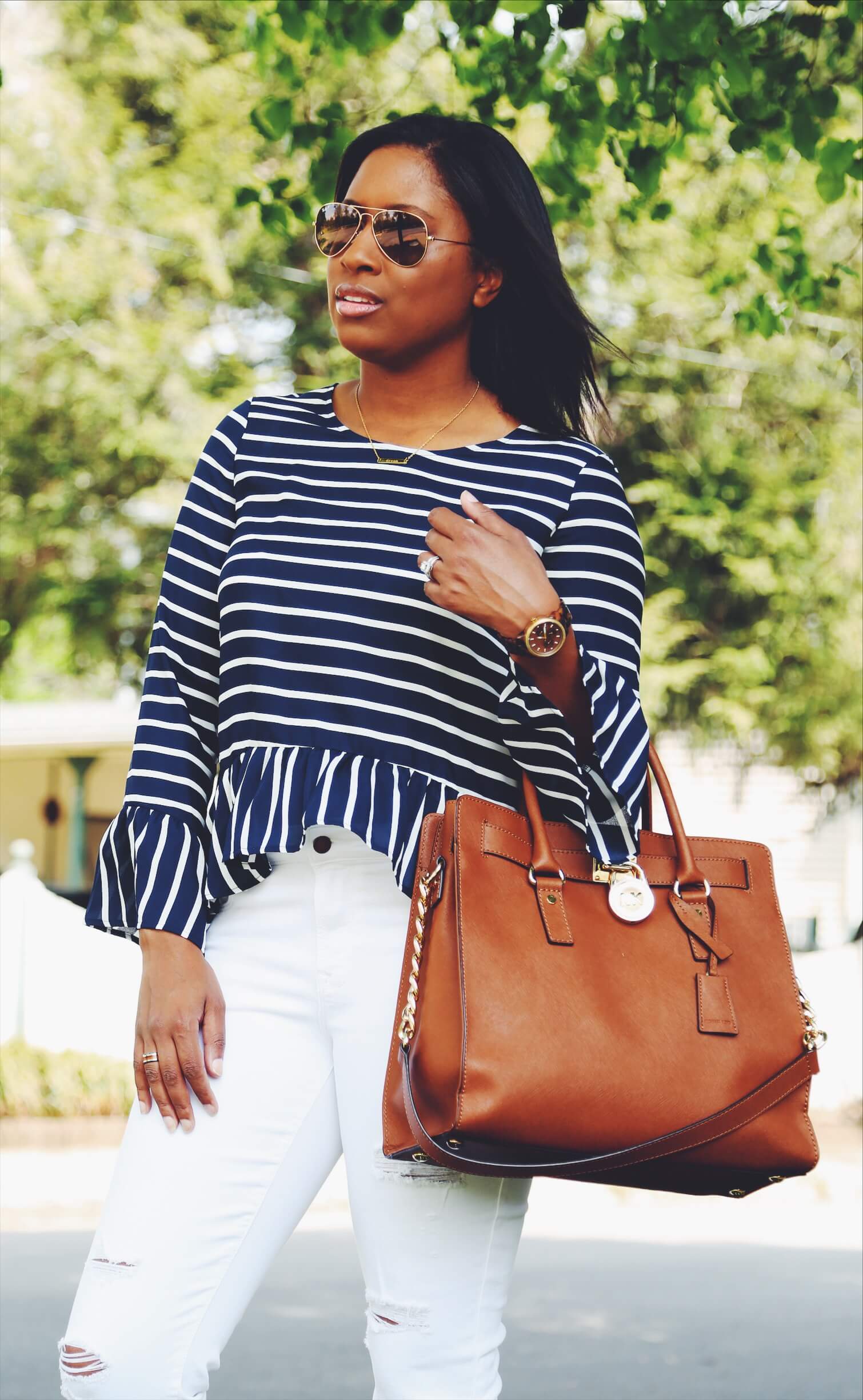 Navy Stripe Peplum Top | JCPenney (similar here)