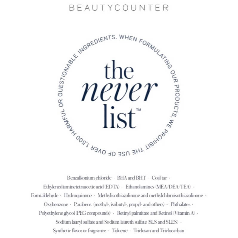 With all of the products Beautycounter is formulating and bringing to the market, they have created their “Never List,” and here is what that commitment looks like: