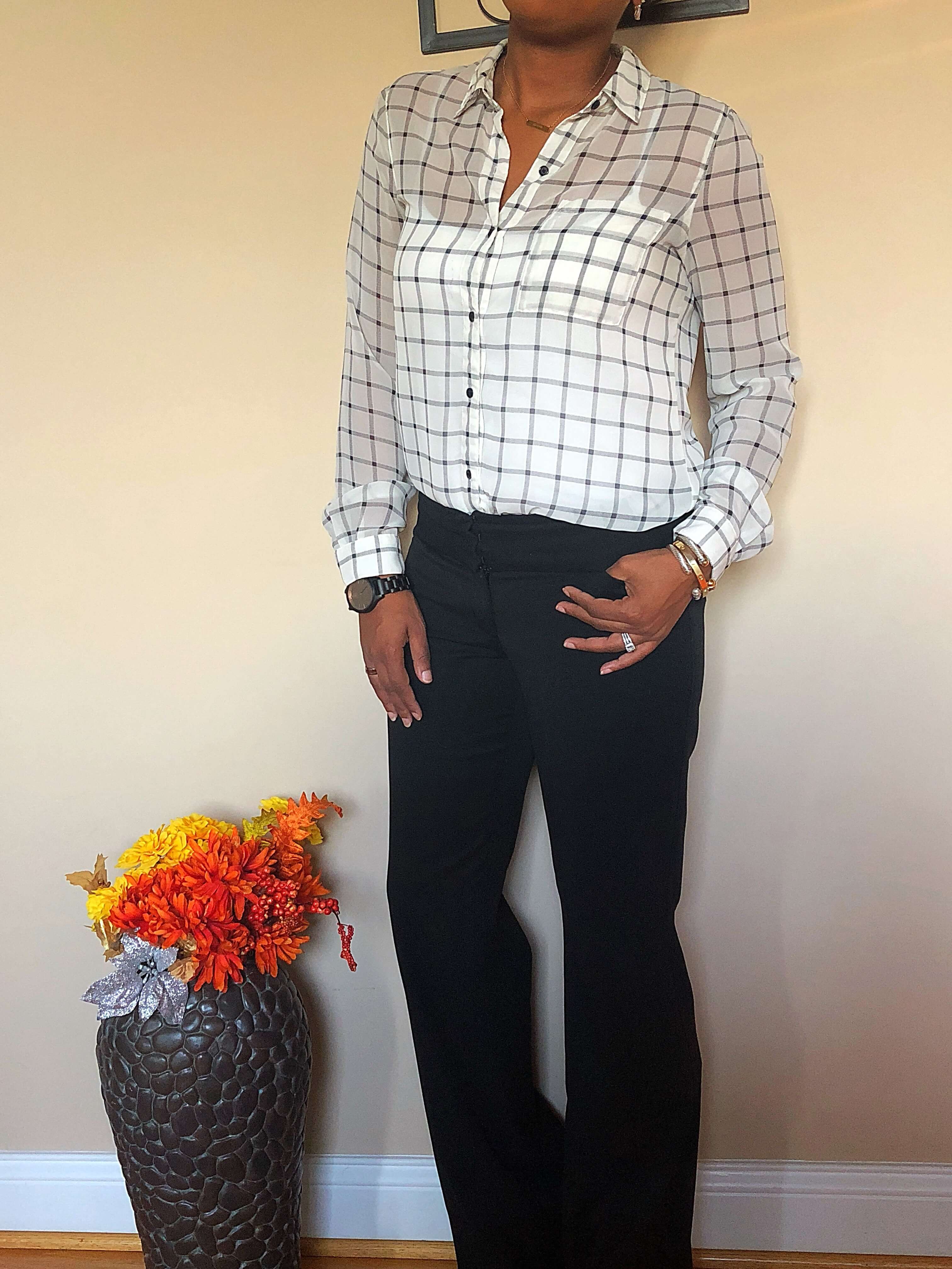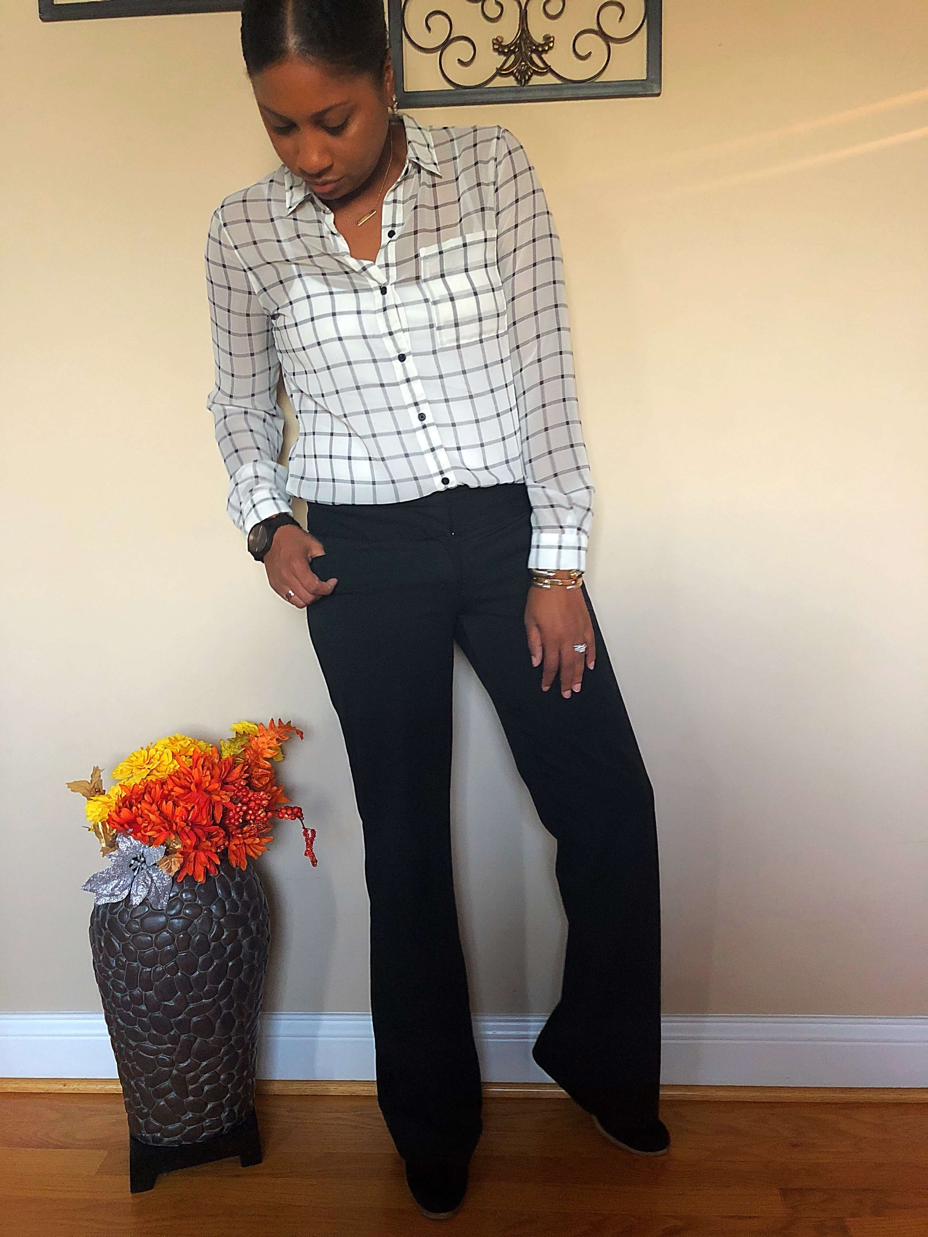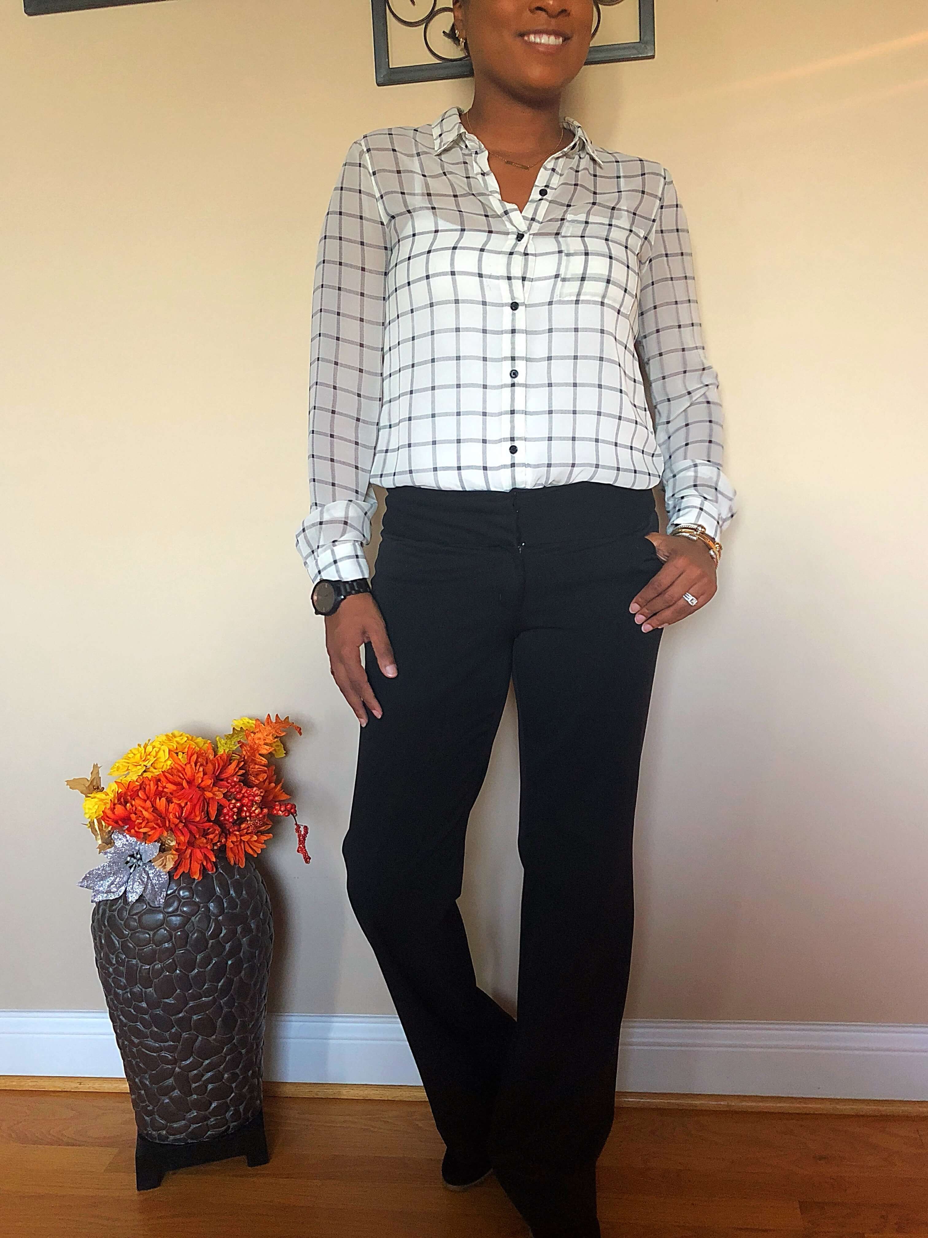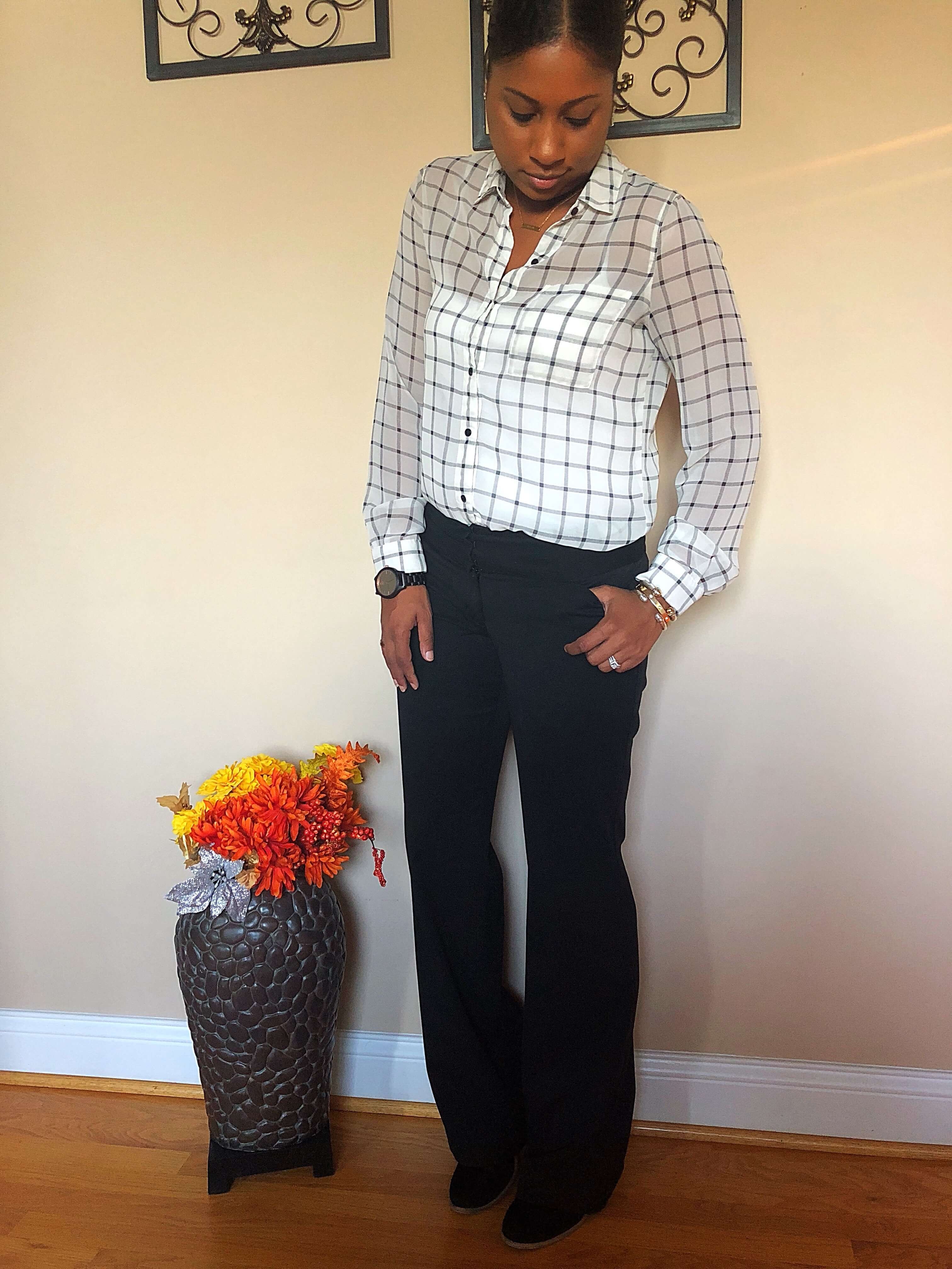 Blouse: Old Navy | Slacks: Express Editors | Black Pumps: Nine West (Option 1)